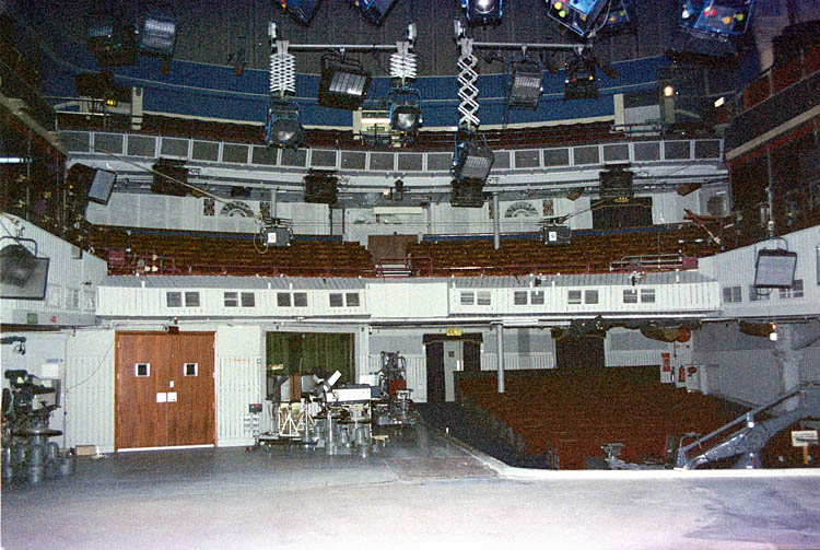 Above the dress circle was the upper circle. This was hardly ever occupied by studio audiences – only for very rare specials with a major star. The view of the stage from the upper circle was terrible – obstructed by lights and speakers. Even if the first few rows were very occasionally used, the rear part of that circle was blocked off by soundproof screens and the seats there never used.