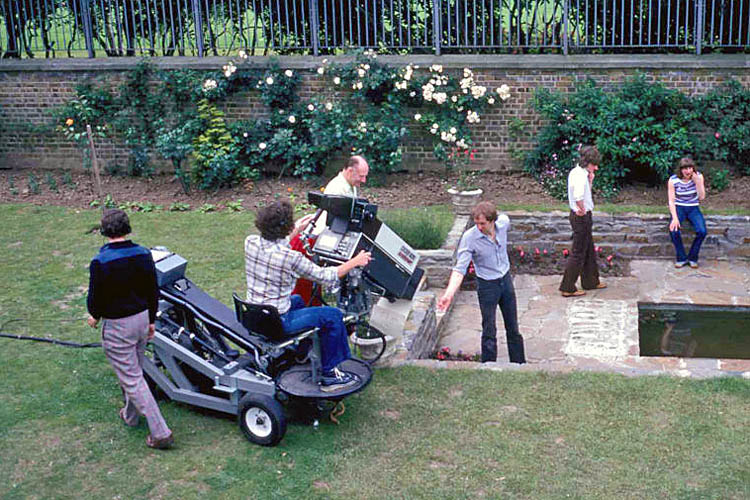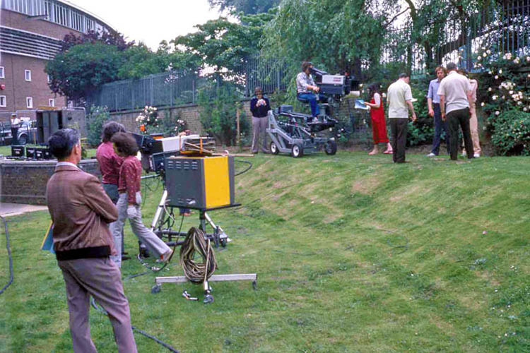 The Blue Peter Garden in 1979 – that’s yours truly sporting a cheesecloth shirt, flared jeans and fashionable blue Kickers operating an EMI 2001.  I was only a lowly camera assistant at the time but in those days Blue Peter was seen as a good training exercise for all departments, including cameras.  Basically, it was an excuse for some of the old boys to have a nice quiet day drinking tea and letting the young lads get on with it.