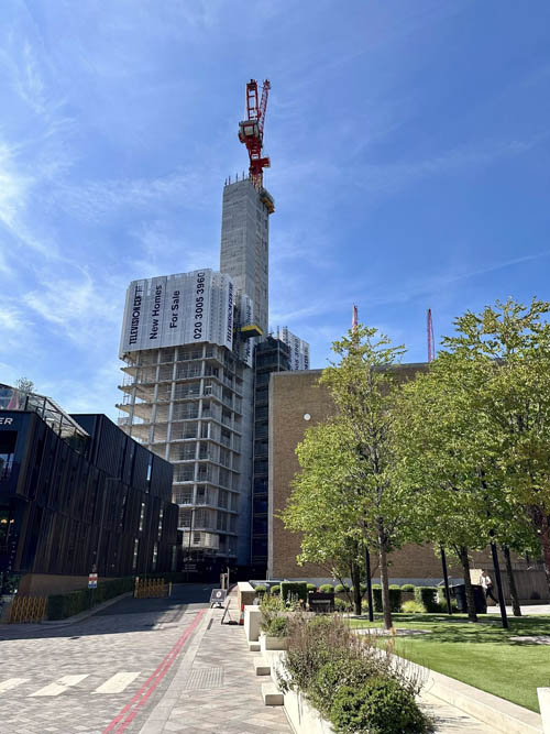 A small housing development has been built in Dodds Yard.  The multistorey carpark was demolished in 2022 and replaced with affordable housing.  The East Tower and scenery block have been demolished.  More flats were being built where the scenery block once stood during 2025.  A new much larger tower containing flats was built closer to Wood Lane during 2024 and 2025.  I was asked by Stanhope to suggest a name for it.  I said Ariel – and amazingly, they used my suggestion.