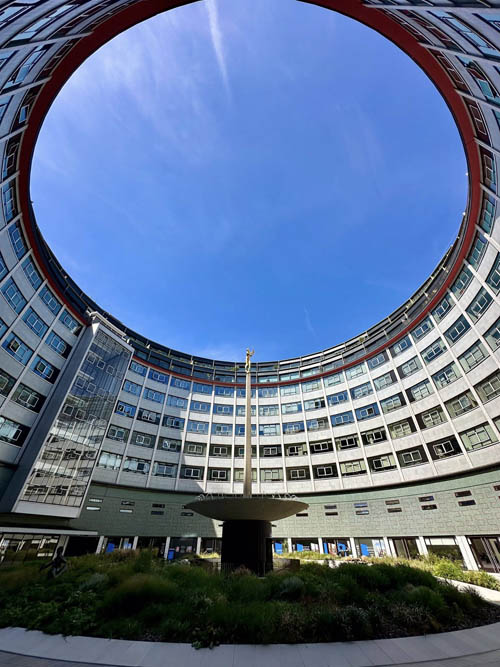On 6th September 2025 fire broke out in the early hours of the morning in a restaurant in the rooftop rotunda above the main reception area.  15 fire engines and 100 firefighters attended – so this was a serious incident.  The London Fire Brigade said that the restaurant, external decking and ducting had all been alight.  People were evacuated from the flats nearby but fortunately no injuries were reported.  No damage was done to the studios side of the building.