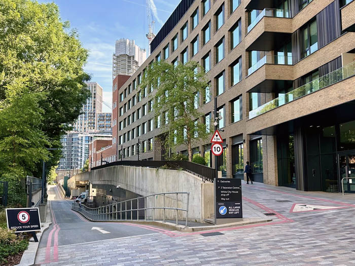 The whole site has been opened up to the public – the gates on Wood Lane have gone and the horseshoe car park has become a public landscaped ‘square’.  The central Helios courtyard is also open to the public and a footpath passes through the building to the right of the South Hall to link up with Hammersmith Park.