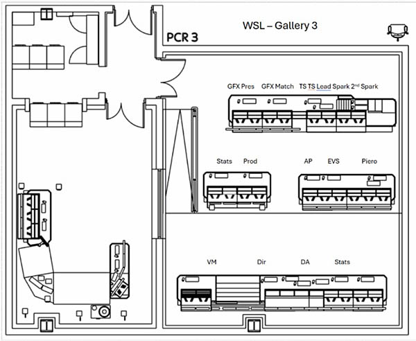 On the first floor is the Sky Sports News studio. I gather this was added as a bit of an afterthought during the original fitting out process. It was later extensively refurbished – opening in August 2014 – and contained a ‘rolling’ team of around 200 journalists, an 18 sq metre video wall, a rotating central desk and 9 different presenting positions. The output and workflow were overhauled again in 2023 with a new set and lighting. The studio mixes both overhead and ground based robotic cameras. (The overhead tracks were installed in 2020.) Astonishingly, just one operator drives all the robotics. I have visited this studio while it was on air and it is extremely impressive.