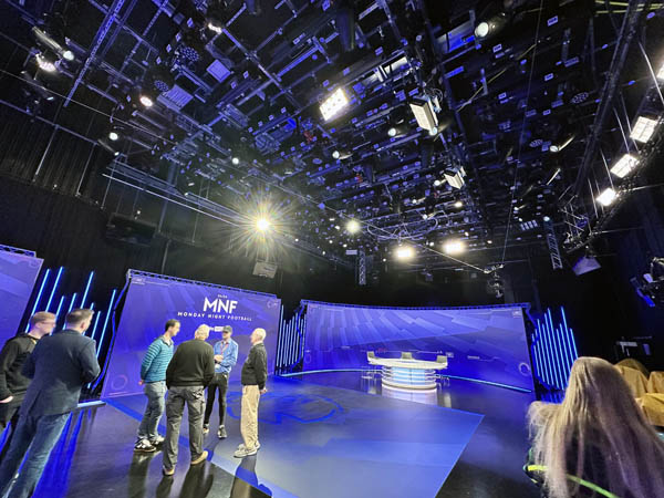By 2024 the demand for studio-based entertainment shows had dwindled, so Sky disposed of its audience seating and the whole studio 4/5 became permanently dedicated to sport. Well, apart from the 2024 general election, when Kay Burley and her team took it over. A cleverly designed set was installed, that features many LED screens and the ability to use Augmented Reality. To enable dynamic, sweeping camera moves, the studio is rigged with a moveable suspended camera of the type that is often seen slung over sport pitches. This ‘Bat Cam’ has forced the whole lighting rig to be set very high, which is certainly a challenge for the LD. The lighting design employs a large number of moving lights, giving great flexibility to the way the lighting can be instantly changed from one programme to another. Sports as diverse as Formula 1, the US Open, Boxing, NFL and of course, football can all make use of the studio – and by changing the screen graphics have a distinctive appearance to the viewer.