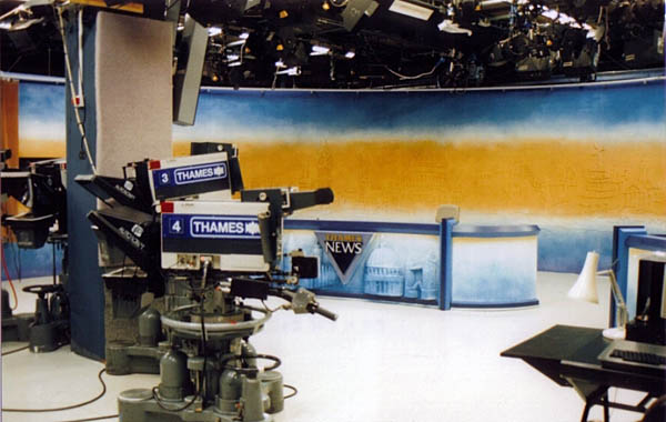 The picture above shows studio 7, the Thames News studio at Euston Road in 1991.  The cramped conditions can clearly be seen.  The studio not only has a very low ceiling but a pillar in the middle of the floor!