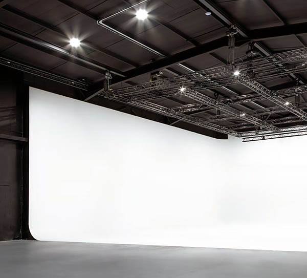 There are two stages on offer.  Studio 1 is 8,000 sq ft with a 60ft x 60ft white cove.  Black drapes are available to pull round over the cyc if required.  There are motorised trusses overhead with pre-rigged Socapex cabling to speed up lighting rigging and the grid height is 24ft.  Support spaces include a dressing room, client room and production office.  There is 12G SDI monitoring available from the stages to the support areas.  Studio 2 is a 5,000 sq ft Virtual Production stage with backout drapes.  There is an 8m x 4m LED Volume screen but this can be added to if required.  Overhead are 5 x 15m steel beams with chain hoists.